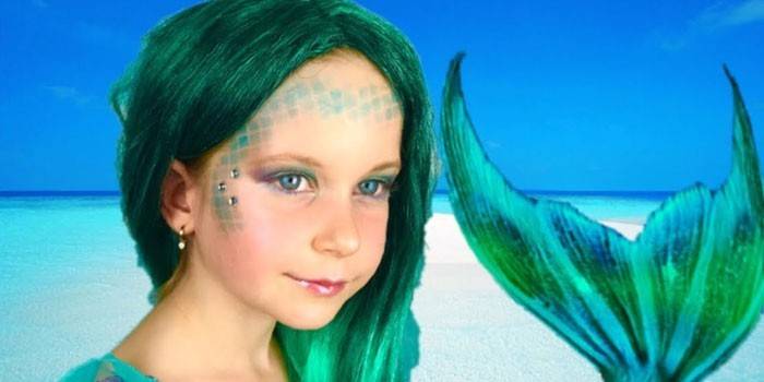 Люди часто представляли русалку у вигляді блідої дівчини з довгими зеленуватими волоссям. Це міфологічна істота могло залоскотати подорожнього і потягти під воду. Дівчаткам подобається образ русалки – вона зачаровує своєю красою. Особливості макіяжу: