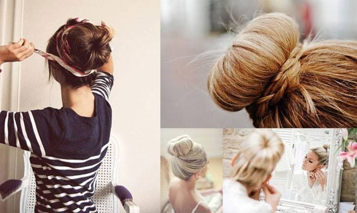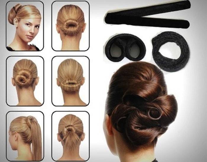 Створити ідеальний пучок з довгого волосся допоможе бабетка – подовжений валик або велика кругла резинка, яка створить додатковий обсяг. Інші назви цього аксесуару – «бублик», «пампушка». Пучок можете розташувати на потилиці або високо на маківці. Щоб його створити, потрібно придбати бабетку, дві гумки, шпильку. Технологія укладання проста: