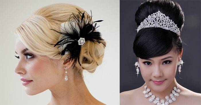 Вибравши для прикраси своєї весільної зачіски елітну діадему, зверніть увагу на спосіб кріплення і її розмір. Якщо цей аксесуар має форму обідка, що нагадує корону, то його легко буде закріпити на маківці. Але у випадку кріплення у вигляді гребінця, невеликий діадемою обрамляють пучок або високі укладання. Масивне прикраса підійде для власниць густого волосся, а крихкий, ніжний аксесуар радимо використовувати дівчатам з тонкими волоссям.
