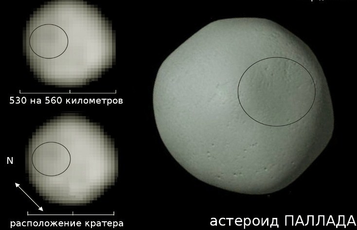- Паллада. Цей астероїд був виявлений другим. Спочатку його вважали зіркою, пізніше віднесли до малих планет. Діаметр цього тіла становить 532 км Астероїд має в своєму складі велику кількість кремнію. Назву для цього астероїда взято з історії стародавніх греків, а згодом воно стало першоджерелом для назви хімічного елемента паладію.