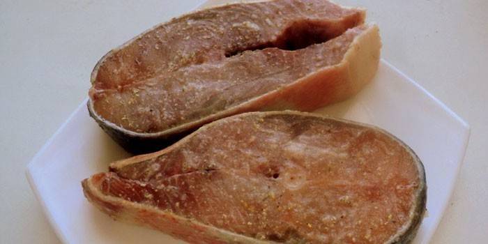 - Тушку лосося обробити на невеликі шматочки, акуратно видаливши кістки. Якщо ви використовуєте стейки, залиште як є.