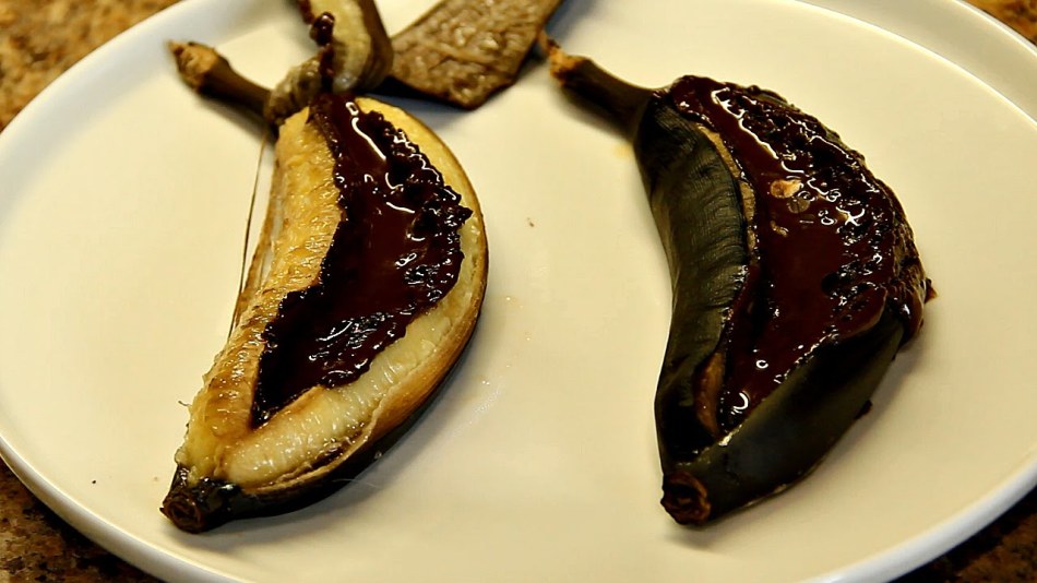 • Банан розрізає на 4 частини і розігрівається в мікрохвильовці