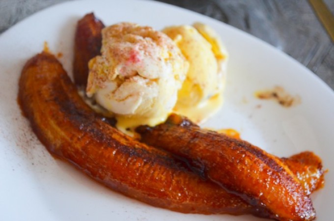 Як правило, банани прийнято їсти сирими, але вони дають оригінальний смак і смаженими. Для приготування такого оригінального ліки береться банан, мед і кориця. Остання вбиває всі мікроби і хвороба проходить швидше. До того ж, вона розчиняє слиз і знижує частоту спазми горла.