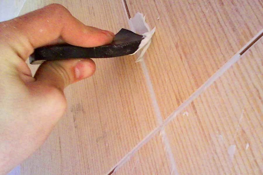- До них відноситься повне зняття затірки, з нанесенням нової. Однак цей процес є досить тривалим, і вимагає деякого часу. У такому разі затирка між плиткою знімається за допомогою невеликої стамески або скребка.