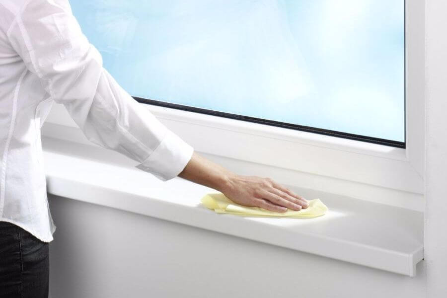 Для початку необхідно видалити жирні плями, а також пил. Підійде засіб для миття посуду, в ньому змочується м’яка губка і акуратно протирають підвіконня. В процесі такої дії з його поверхні видаляється жир, бруд, пил, що готує його для подальшого очищення.