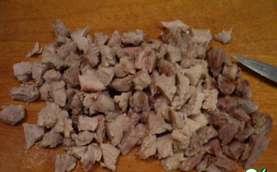 - 400 грам м’якоті яловичини відварюємо в підсоленій воді до готовності