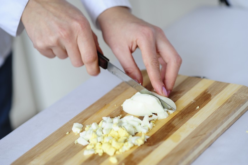 - Шість варених яєць подрібнюємо будь-яким способом