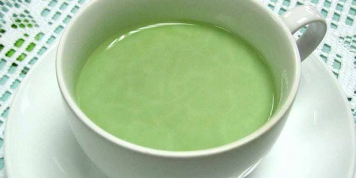 - Залити окропом (0,5 л) зелений чай (2 ч. л.), через півгодини розбавити теплим молоком (1:1). Прокип’ятити, пити протягом дня.