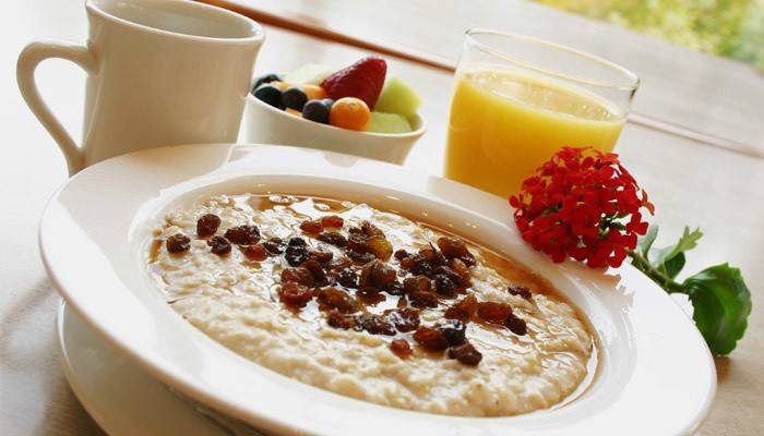 вівсянка на воді, свіжовичавлений апельсиновий сік
