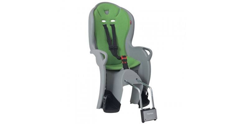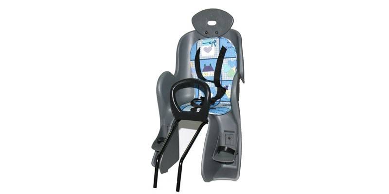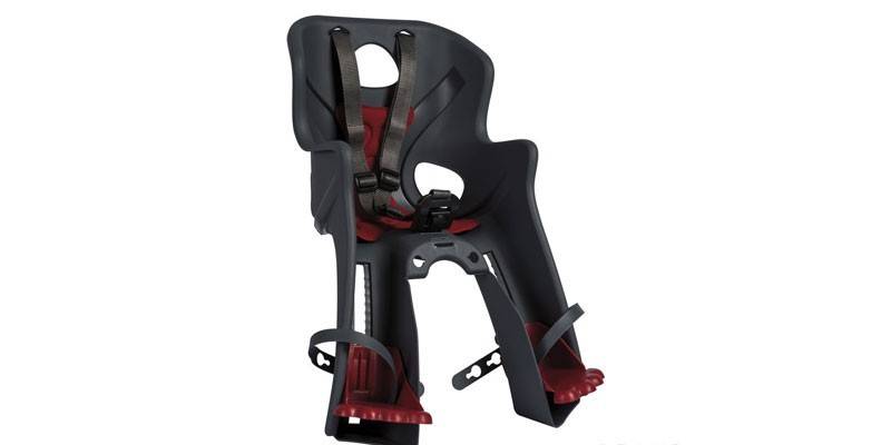 - Характеристики: дитяче крісло на велосипед з фіксацією на багажнику з невеликим нахилом і триточковим приєднанням ременів. Витримує до 22 кг. Вага становить 4,6 кг Діаметр труби рами – 27-40 мм