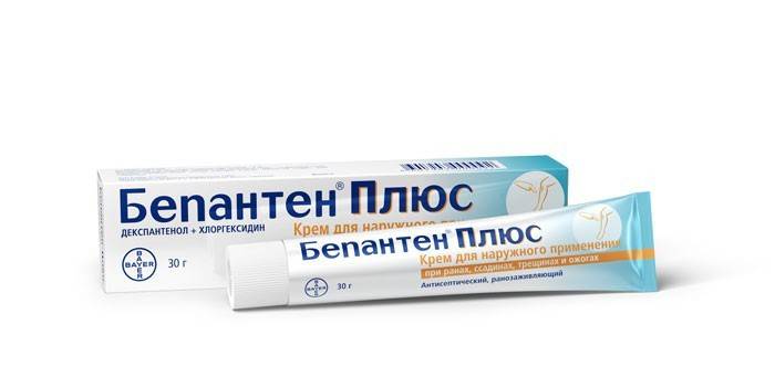 - Бепантен Плюс. Входить в список ефективних препаратів, його наносять на суху шкіру, попрілості, місця, де вона потріскалася. Допомагає уникнути проникнення, розмноження інфекції.