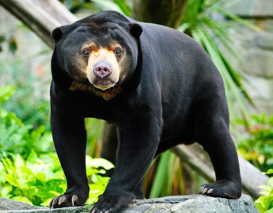 Важливо: На грудях у ведмедя красується підковоподібне пляма оранжевого кольору, за що його назвали сонячним.