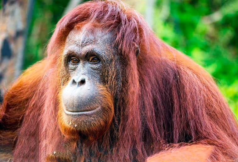 Орангутан дуже схожий з людиною. Недарма це тварина отримало прізвисько «лісова людина». Тіло орангутана вкрите рудуватою шерстю, руки довші ніг, що дозволяє їм вправно пересуватися по деревах.