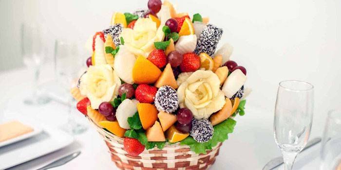 Якщо не хочеться витрачати час на спорудження композиції з фруктів, тим більше не завжди це може вийти з першого разу, то відмінним варіантом може стати оформлення звичайної кошика смачними плодами. В подарунок таку захоче отримати кожен, або їй можна просто прикрасити святковий стіл. Як оформити кошик з фруктами своїми руками? Та дуже просто: