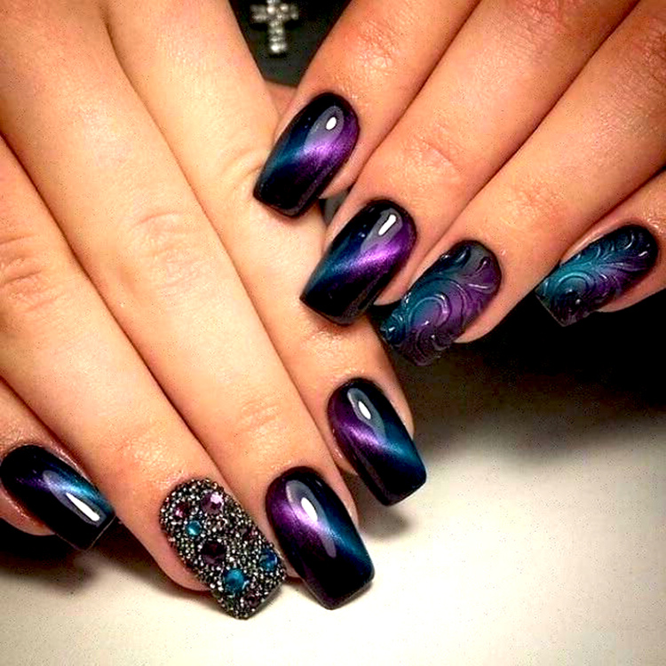 • Манікюр 3Д котяче око, хамелеон: фото