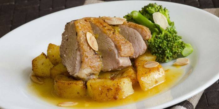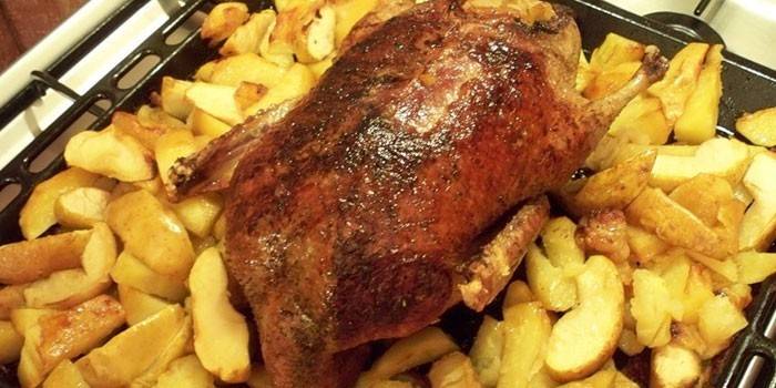 Якщо приготувати м’ясо з гарніром, то можна вдало заощадити на час, проведений на кухні, і зусиллях. Наприклад, качка з яблуками і картоплею швидко, легко запікається, але зате результат виходить неймовірно смачним і поживним. Цієї страви вистачить на всю родину або велику дружню компанію. Кожен буде радий продегустувати смачні кисло-солодке друге.
