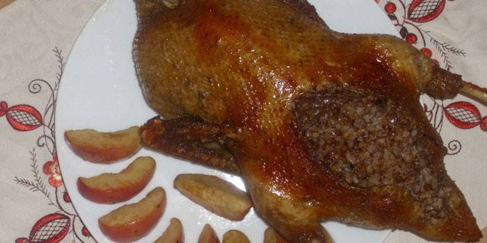 Якщо з’явилася ідея зробити ситний, смачний, але незвичайний вечерю, то качка в духовці з гречкою і яблуками стане гарним варіантом. Це блюдо допомагає значно скоротити перебування на кухні і заощадити грошові кошти з сімейного бюджету. Приготування такого унікального другого за запропонованою нижче інструкції, дозволить нагодувати навіть велику родину.