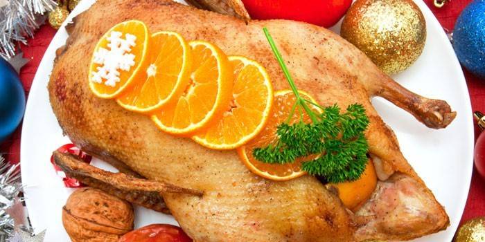 5. Запікається качка, фарширована яблуками і гречей 2 години (температура духовки -180-200 градусів).