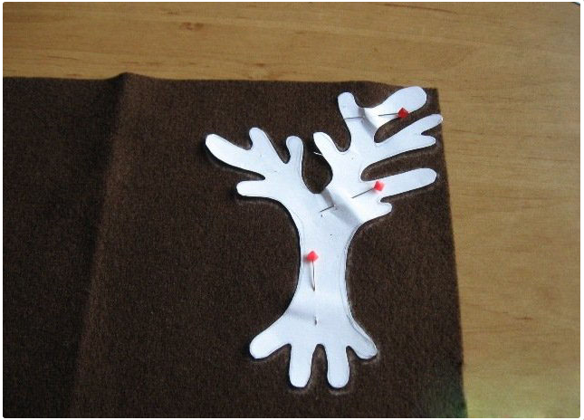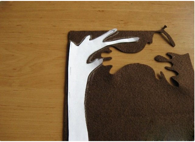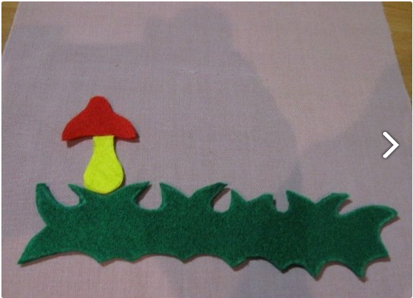 • За шаблоном вирізаємо з фетру їжачка, гриб, стовбур, крону дерева та листочки