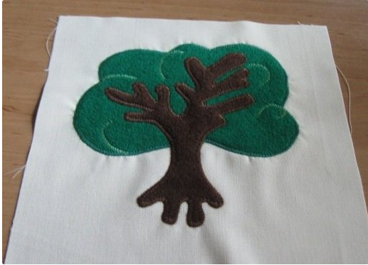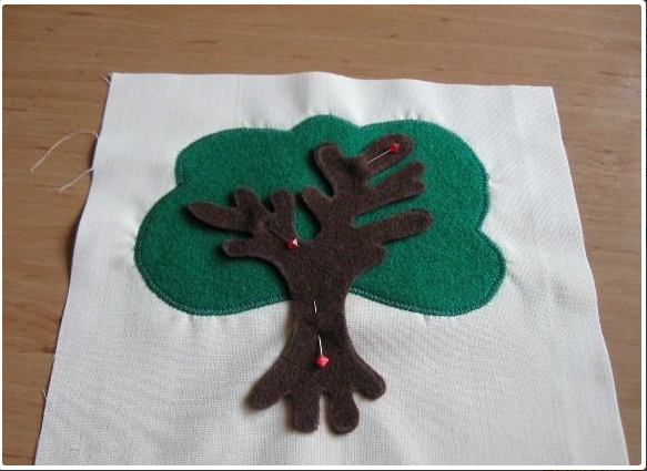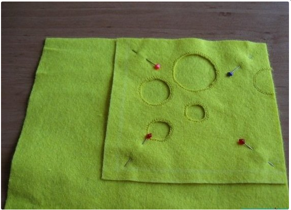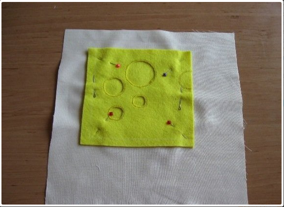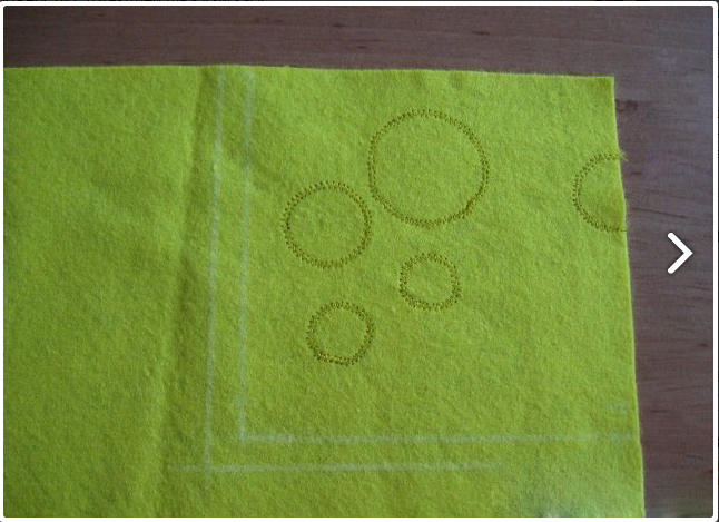 • Розміщуємо наші 2 шматочки фетру на білій «сторінці» і прошиваємо зигзагом на машинці