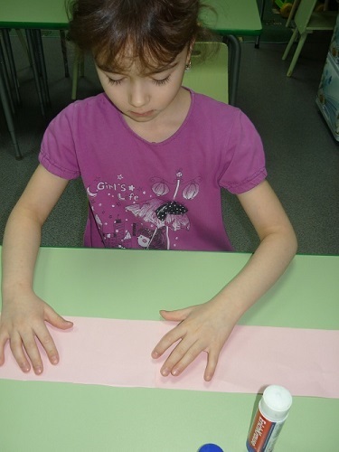 • Беремо сірі/коричневі вузькі стрічки/шнурки відрізаємо п’ять відрізків в 2 см