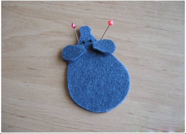 • Пришиваємо до сторінці, там де очі пришиваємо чорні намистини