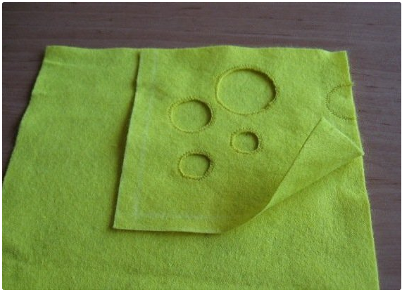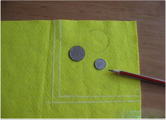 • З жовтого фетру вирізаємо квадрат 12*12 см і дублюємо ще один такий же