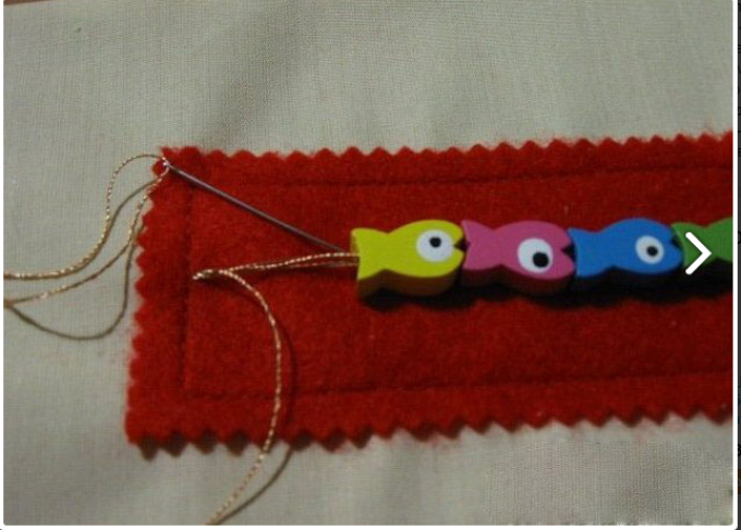 • На грубу нитку або шнурок нанизуємо бісер і пришиваємо вздовж фетру