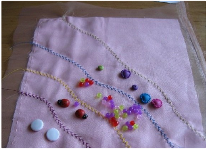 • Беремо п’ять кнопок і хаотично пришиваємо