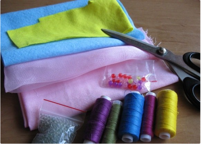 • Шматочок фетру та 5-6 строкатий намистин різних кольорів і фактур