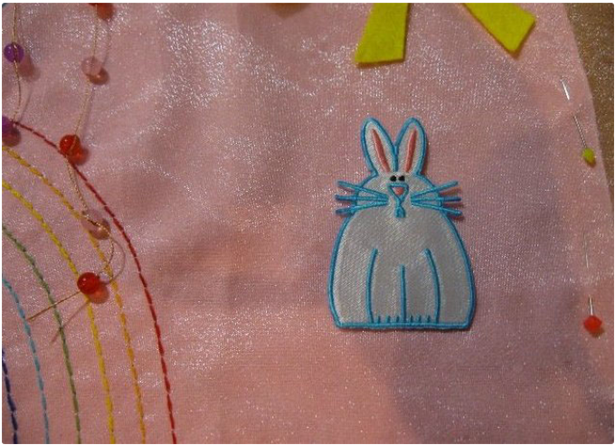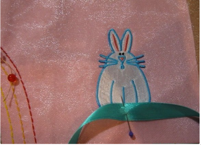 • Пришиваємо зайчика або будь-якого іншого тварини, що знайдете у своїх заготовочках. З стрічки можна зробити прикрасу бантик для зайченяти