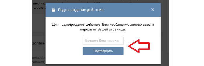 • Введіть пароль від сторінки ВК і натисніть «Підтвердити».