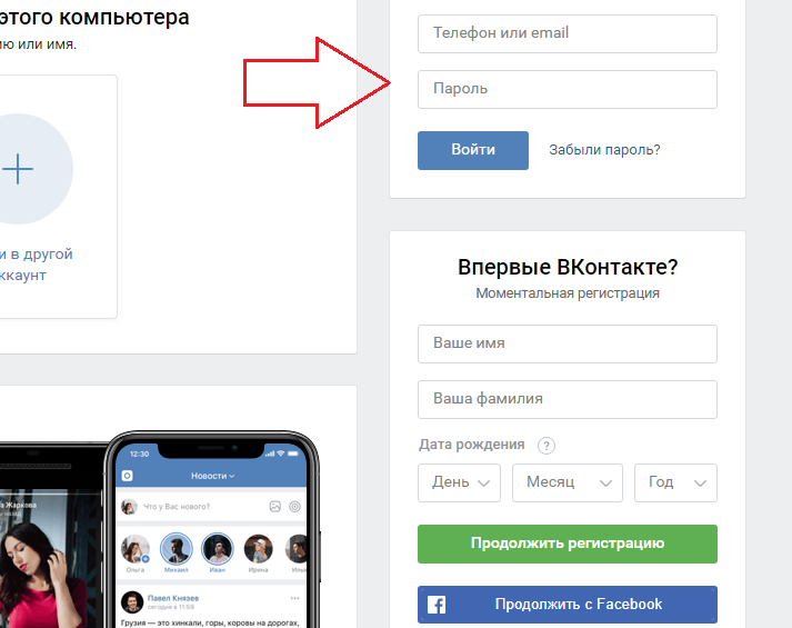 • Введіть логін або номер телефону і пароль від вашої сторінки.