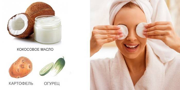 Самостійний догляд за обличчям за допомогою виготовлених з натуральних компонентів домашніх засобів допомагає продовжити молодість. Дуже ефективно для шкіри навколо очей масло кокоса як у чистому вигляді, так і в складі кремів, масок. Є багато дієвих засобів з цим компонентом, які легко готувати і застосовувати.
