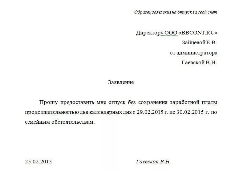 Заяву потрібно подати заздалегідь, щоб у роботодавця було час на створення наказу про відмову або навпаки. Якщо відпустка надана, то дозволяється відсутні стільки днів, скільки обумовлено наказом. Повернутися на робоче місце потрібно на наступний день після дати закінчення відпустки.
