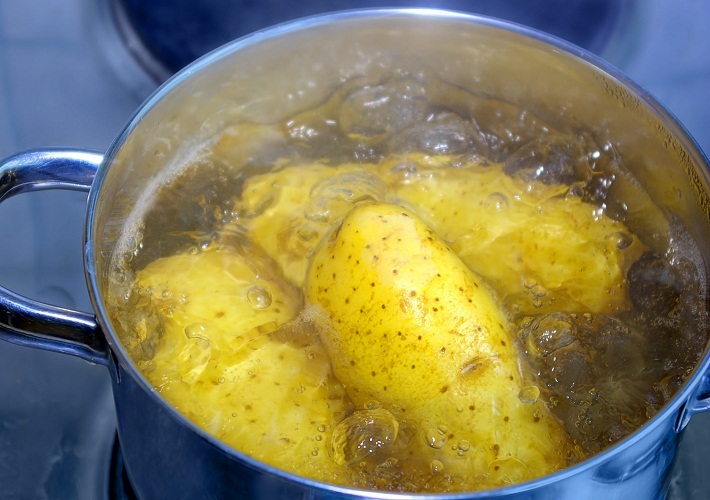 • Попередньо замочіть картоплю на 12 годин, мінімум на 4-6. Воду при цьому міняйте через кожні 3-4 години. Це дозволить знизити рівень крохмалю і позбутися нітратів у разі, якщо продукт, куплений в магазині.