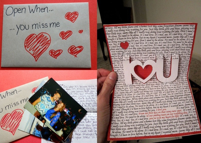 • відкрий, коли настав твій День народження, але я не поруч. Якщо хочете внести нотку інтиму, тоді сховайте хутряні наручники, або вкладіть якийсь невеликий, але цінний подарунок для вашого чоловіка. І, звичайно ж, помістіть лист зі словами любові;