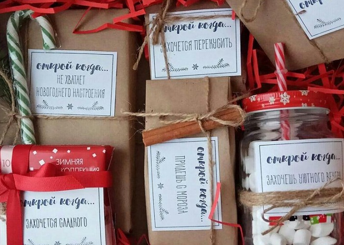 • а якщо «холодно» — вкладіть шкарпетки або рукавички. В ідеалі – якщо вони будуть пов’язані своїми руками. Також можна упакувати і шарфик, правда, буде потрібно великий конверт або навіть коробочка.