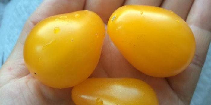 - Золота кисть – скоростиглий томат для закритого ґрунту. Рослина висотою до 1,5 м, потребує підв’язування і обрізання куща. Плоди дрібні 27-33 г, сливовидної форми, жовтого кольору і солодкого смаку, універсального застосування.