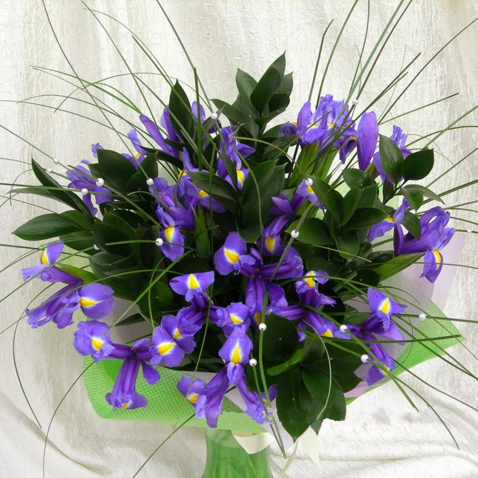 Красиві букети з білих, синіх, червоних, жовтих, фіолетових ірисів своїми руками: фото