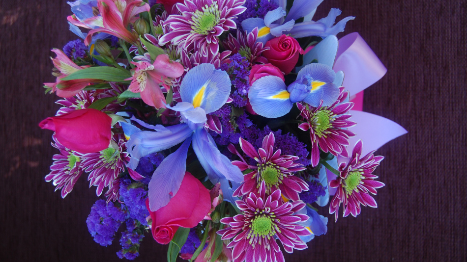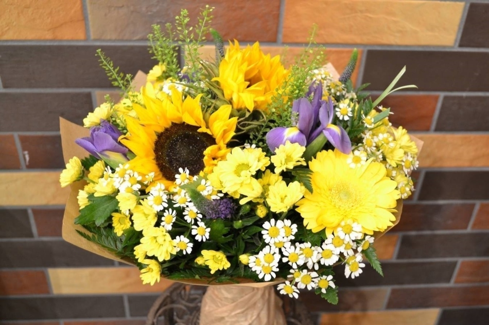 Якщо букет складений з хризантем і ірисів, то виглядає він більш гармонійно.