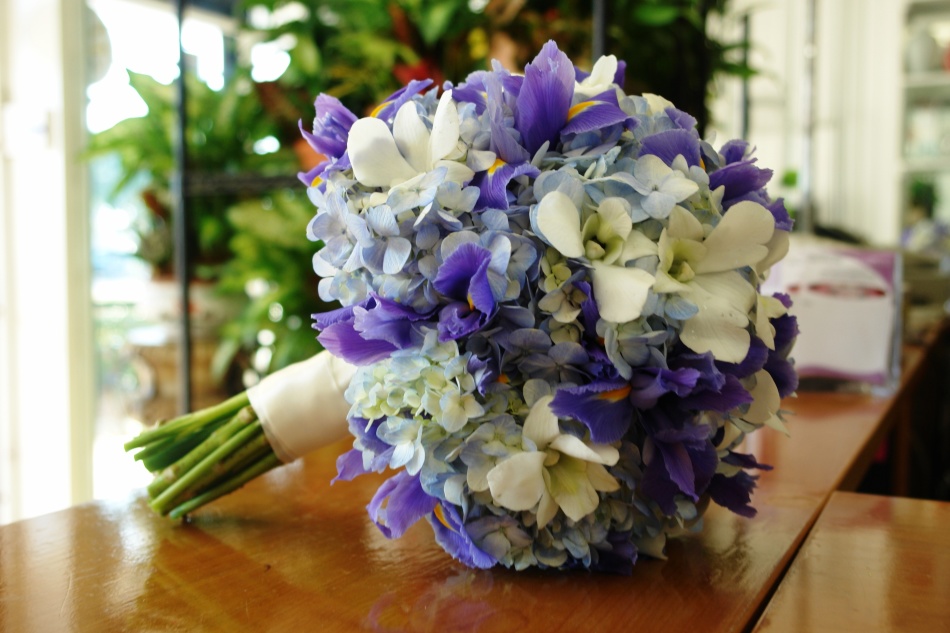 - Ніжний букет з білих лілій і синіх ірисів може бути оригінальним подарунком до будь-якого торжества.