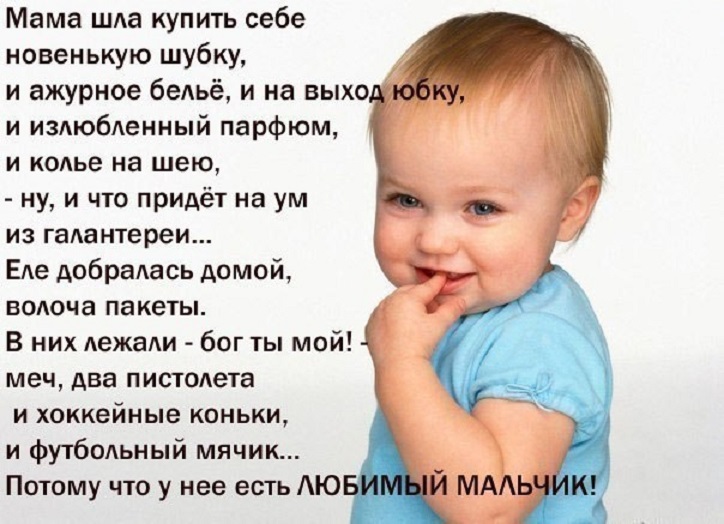 Бути мамою сина — ось це нагорода! І більшого щастя в житті не треба! Спадкоємець, захисник і татові — відрада! Я — мама синочка і цьому рада!