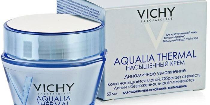 Зволожуючий крем для обличчя Vichy містить гіалуронову кислоту, підходить всім типам шкіри, включаючи чутливу і пересушений. Схвальні відгуки отримав завдяки своїй універсальності і хорошою поглинання. Відноситься до серії Aqualia Termal, містить термальну воду. Ціна засоби висока – 1100 – 1400 рублів за невеликий тюбик 40 мл.