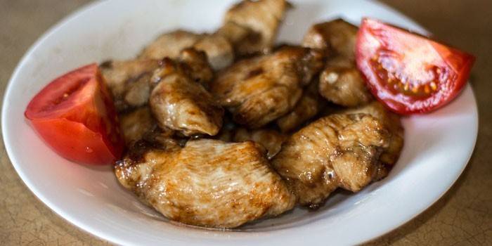 - Курятину промийте, обсушіть, поріжте шматочками. Перемішайте їх з маринадом. Залиште на пару годин.