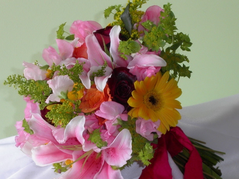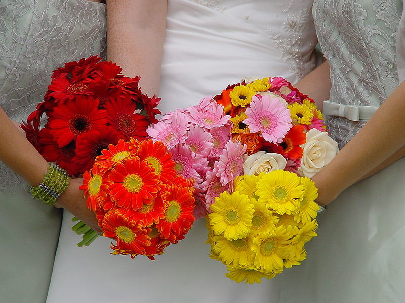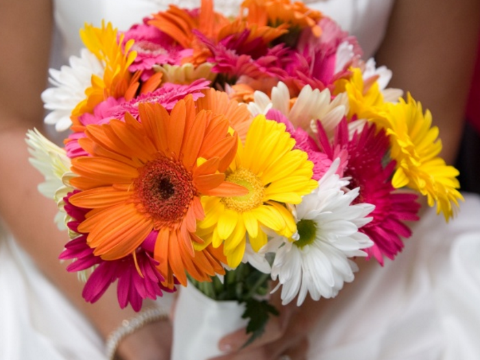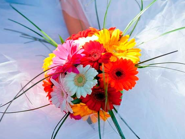 З гербер та інших квітів можна скомпонувати вишуканий букет нареченої