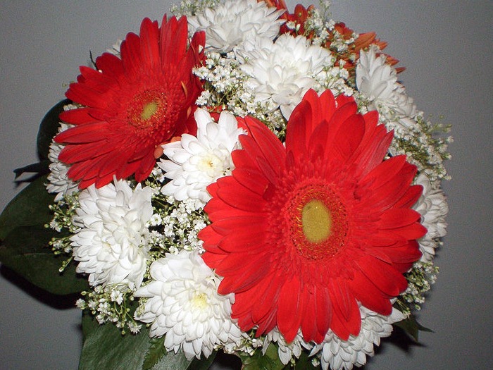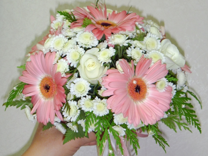 Квіти гербери: букет з трояндами, хризантемами. Як зробити гарний весільний букет з білих гербер, гербер і хризантем?