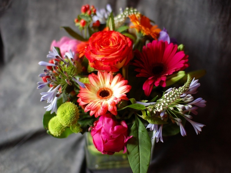 • Красивий букет з різнокольорових гербер