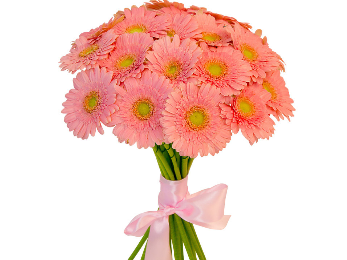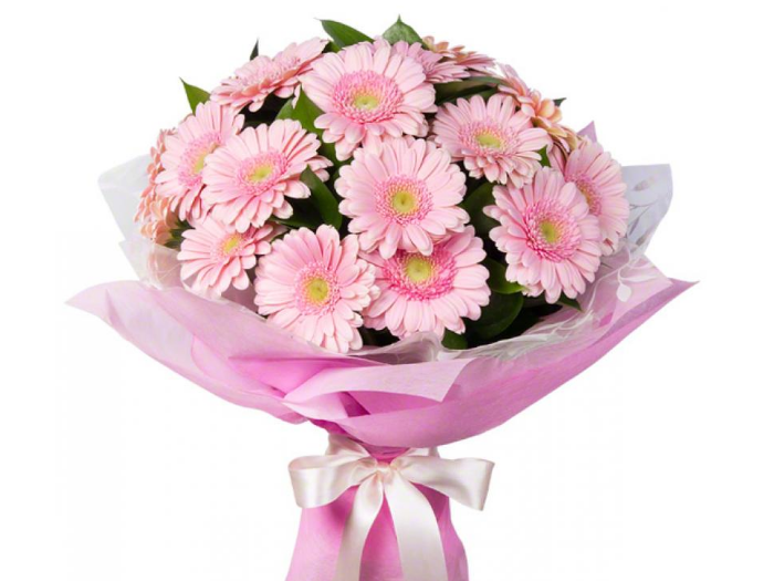 Ніжно-рожеві, яскраві, пастельні і кремові кольори в палітрі рожевого кольору так багато відтінків. Всі вони втілилися в чудових кольорах – герберах. Букет рожевих гербер уособлює собою співчуття і захоплення.