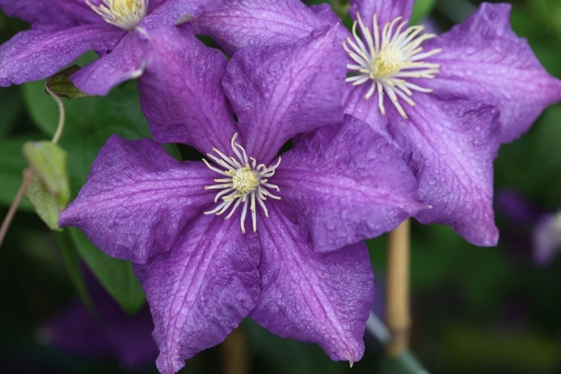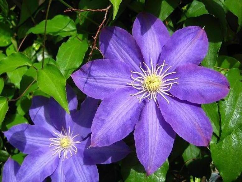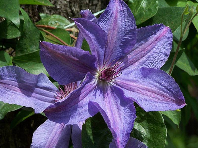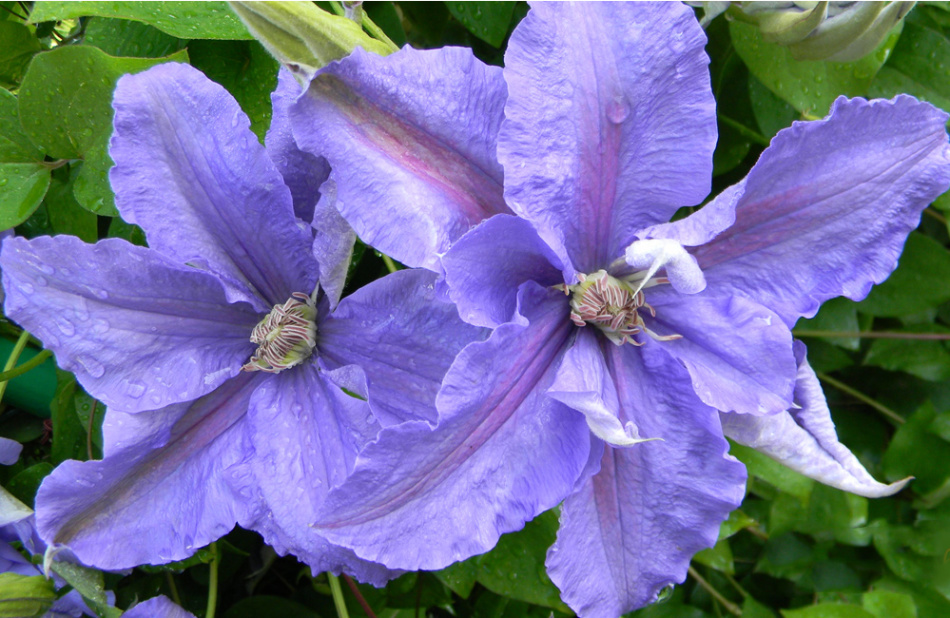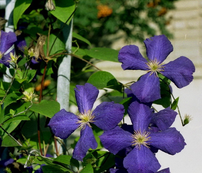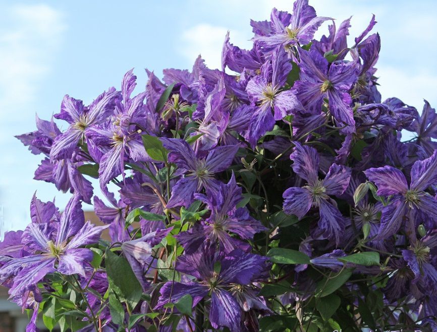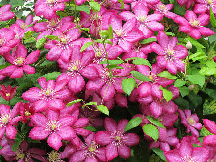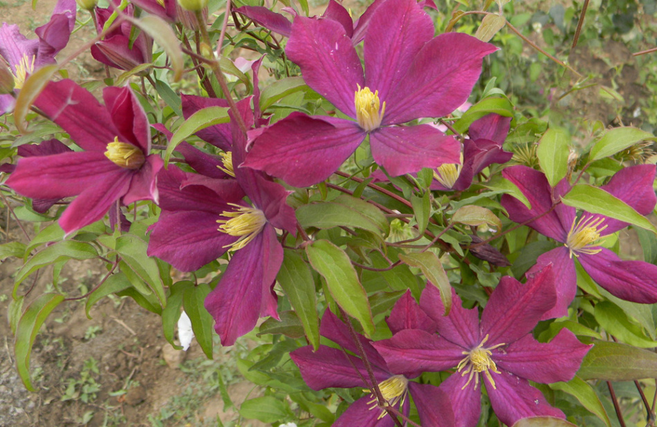 • Жакмана. Пишна ліана з великими квітками і добре розвиненими коренями. Квіти аромату не мають, зате вони мають синьо-фіолетовими або пурпуровими тонами. Клематис цього виду рясно цвіте, а перед зимою обрізається.